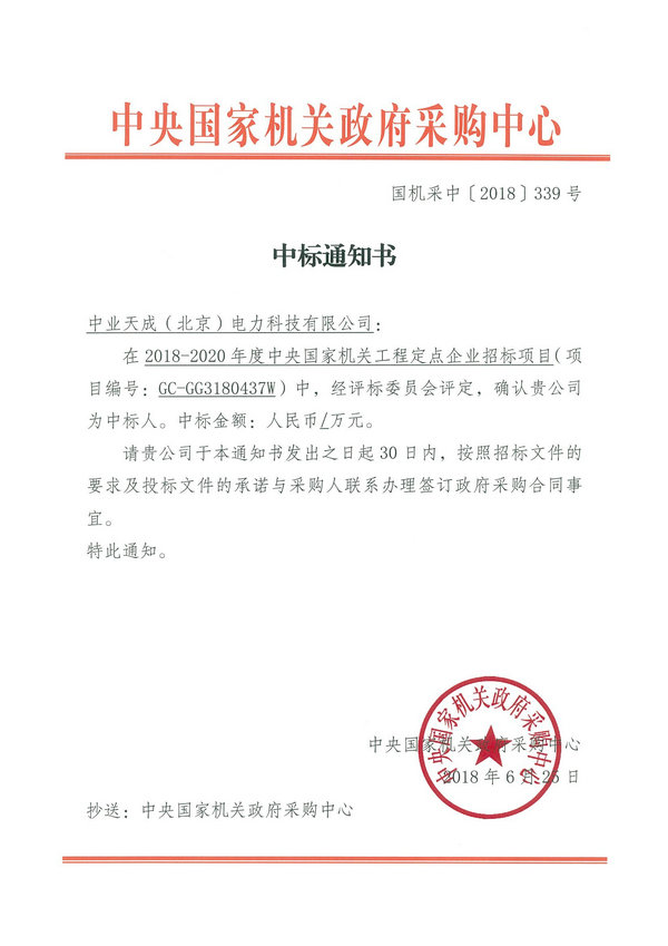 “中业天成”成功中标2018-2020年度中央国家机关工程定点企业